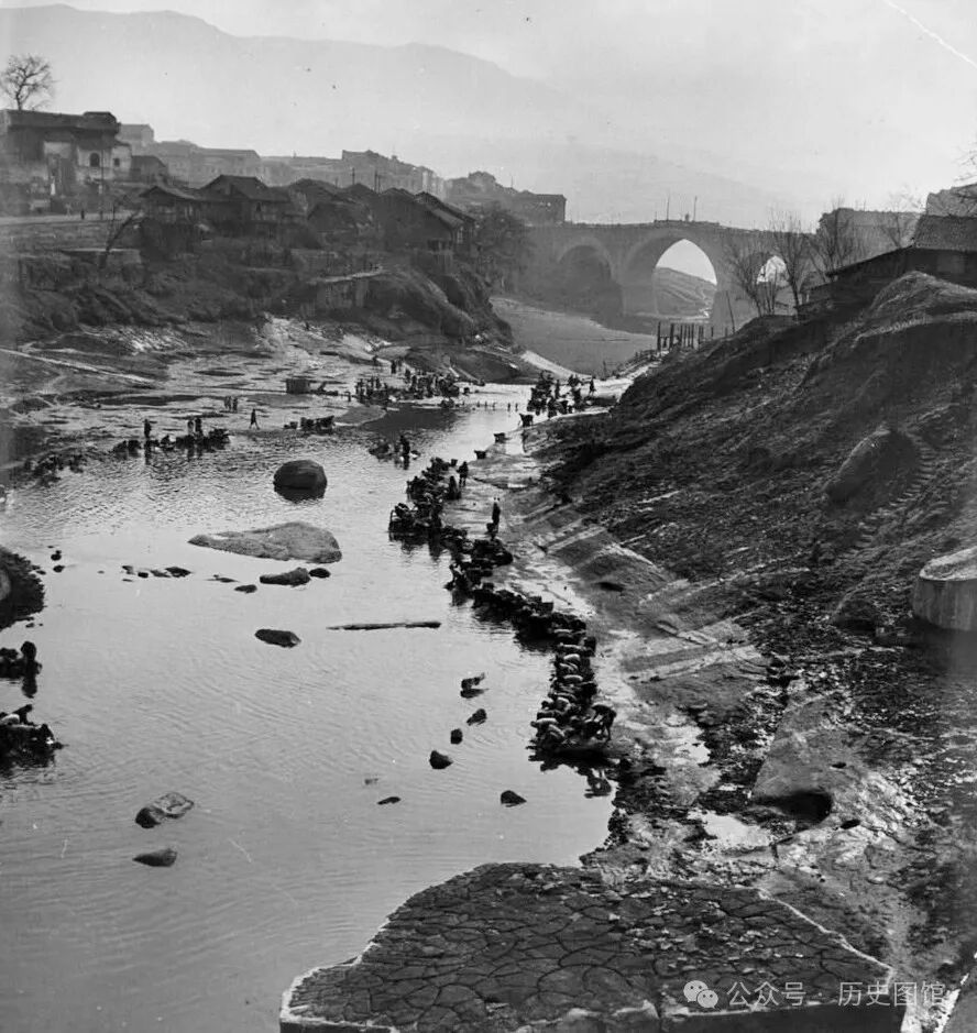 照片中,桥下河道边有很多人在洗衣服。到了上世纪50年代,桥身老旧,成为危桥,遂将桥楼拆除。1970年,山洪爆发,整整矗立了100年的万州桥,轰然坍塌消失在大水之中。