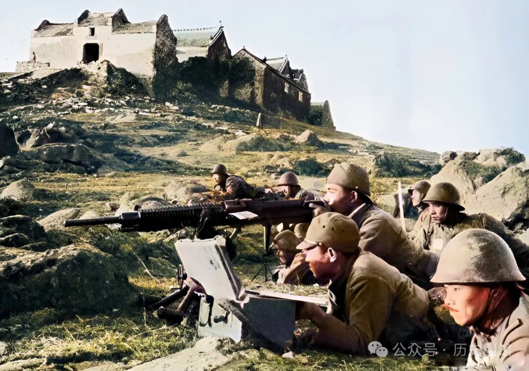 1938年3月,安徽怀远南面荆山山顶上,日军的重机枪阵地就设在这里。日军居高临下,正在观测和中国军队阵地情况。这些日军,隶属于日军添田部队。日军占领安徽怀远后,在城内犯下了滔天罪行。