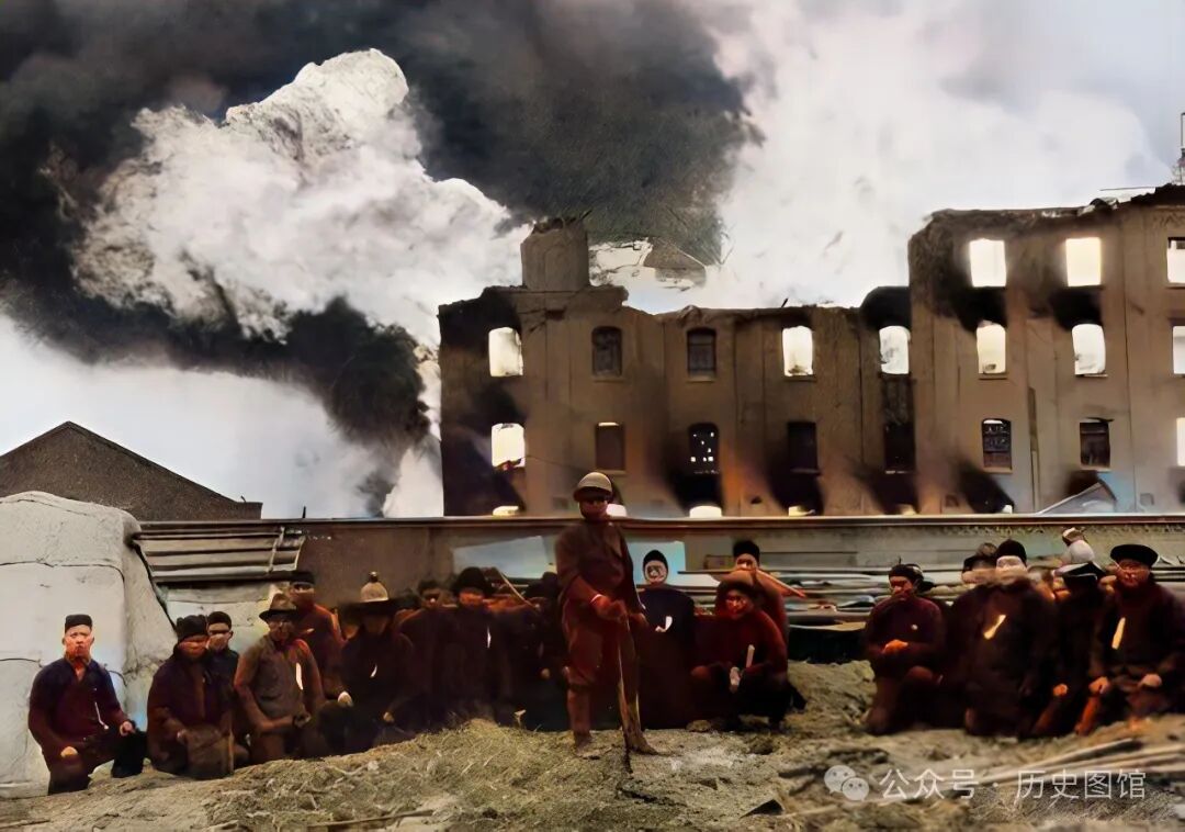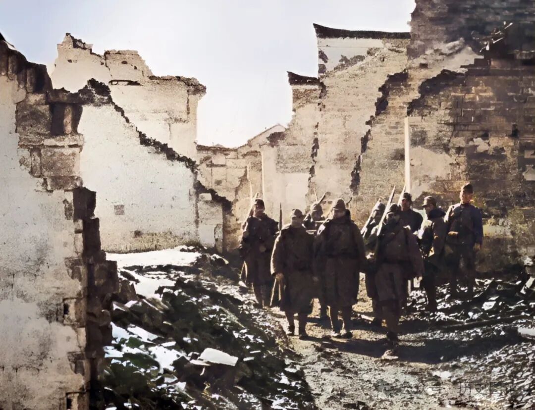 每一张老照片,都是一段看得见的历史。日军的炮火将城市摧毁,照片真实记录了安徽战场上日军的残暴,看了让人义愤填膺(原片是模糊的黑白照,进行了上色和清晰度处理)。