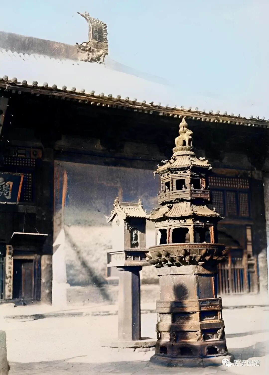 他们在中国各地收集天文、地理、历史变迁等方面的资料,对中国的各个方面进行了严密调查。《亚东印画辑》就是日本探险家和学者在中国探险取得的“成果”之一。下面这些大同老照片(后期上色)就出自此画辑。