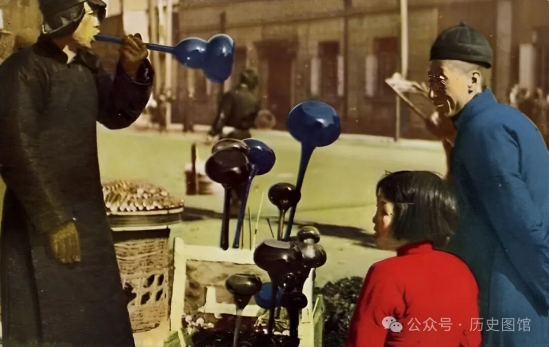 在东北一个集市上,一名小贩正在卖“琉璃不对儿”。他拿起一个吹了起来,清脆悦耳的声音,吸引了从旁边经过的一对父女的注意。