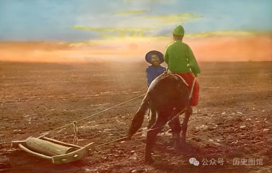 那时候没有大型农机设备,这种传统的耕种方式,在中原地区也能见到。这位农民让自己的孩子骑在马上,爷俩干起活来充满了欢声笑语。