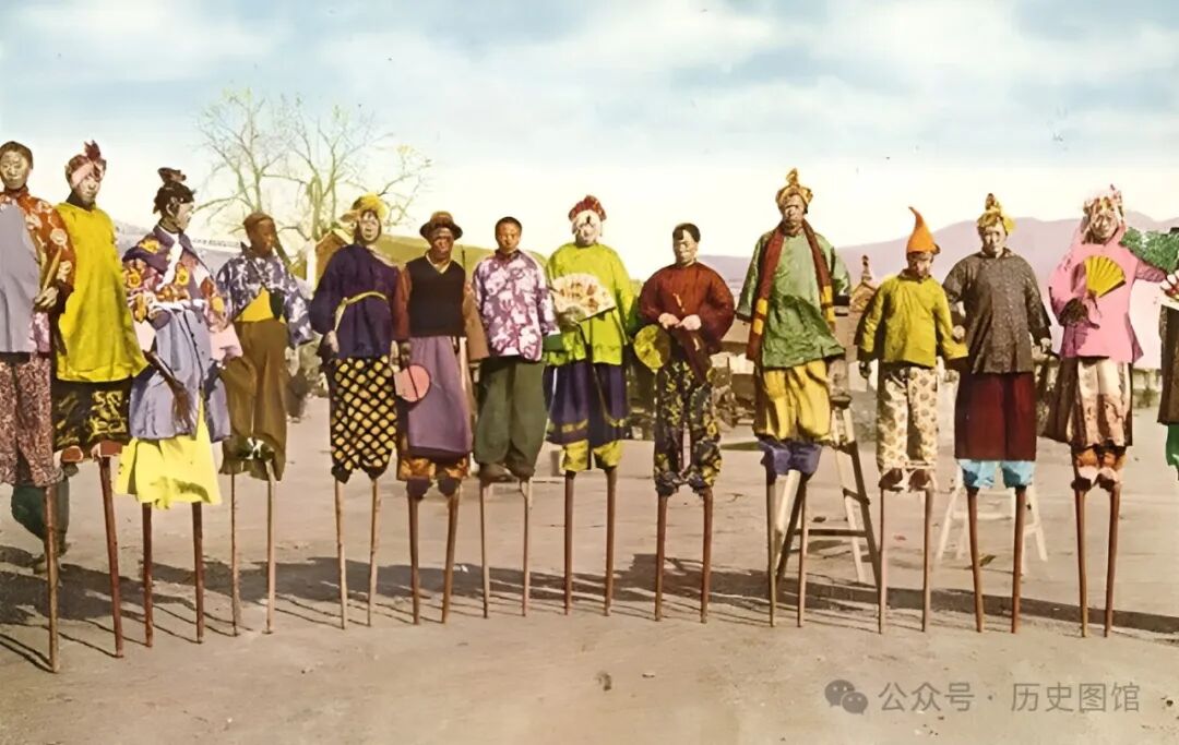 30年代的东北,人们的业余文化生活也是丰富多彩的。在当地一次庙会上,一些踩高跷演员,穿着五颜六色的演出服装,扮演不同的角色。精彩的演绎,吸引了很多人的围观。踩高跷,是一个传承了几千年的民间传统习俗,现在看到的已经不多了。