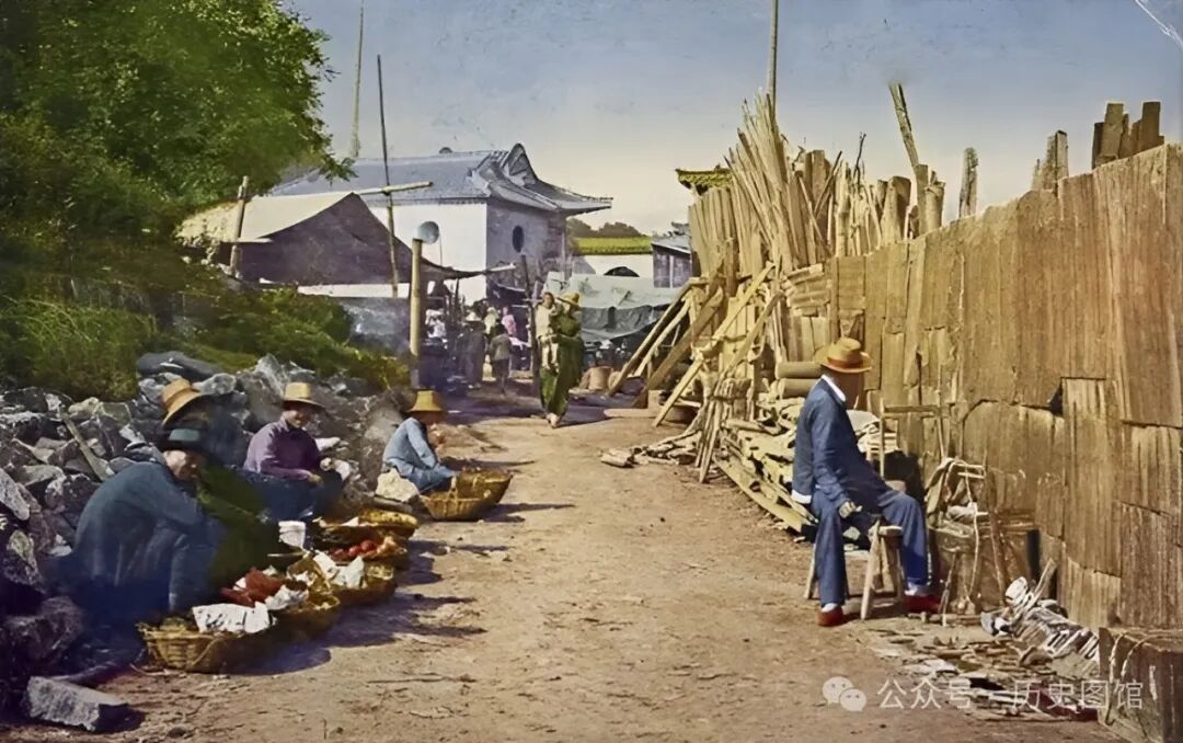 在一个小镇的前边,有家木材加工厂。加工厂围墙外面,有几个卖水果的摊贩在摆地摊。