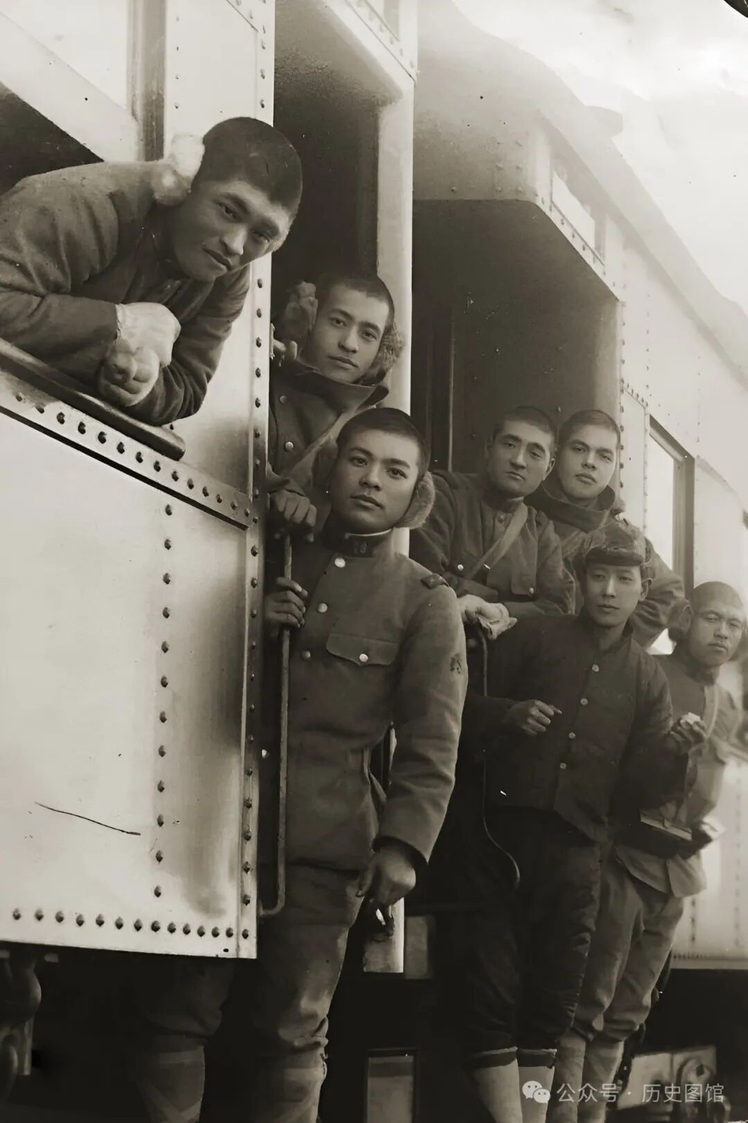 日军第78联队的士兵,登上一列火车。仔细看,右起第4个人便是相册的主人。