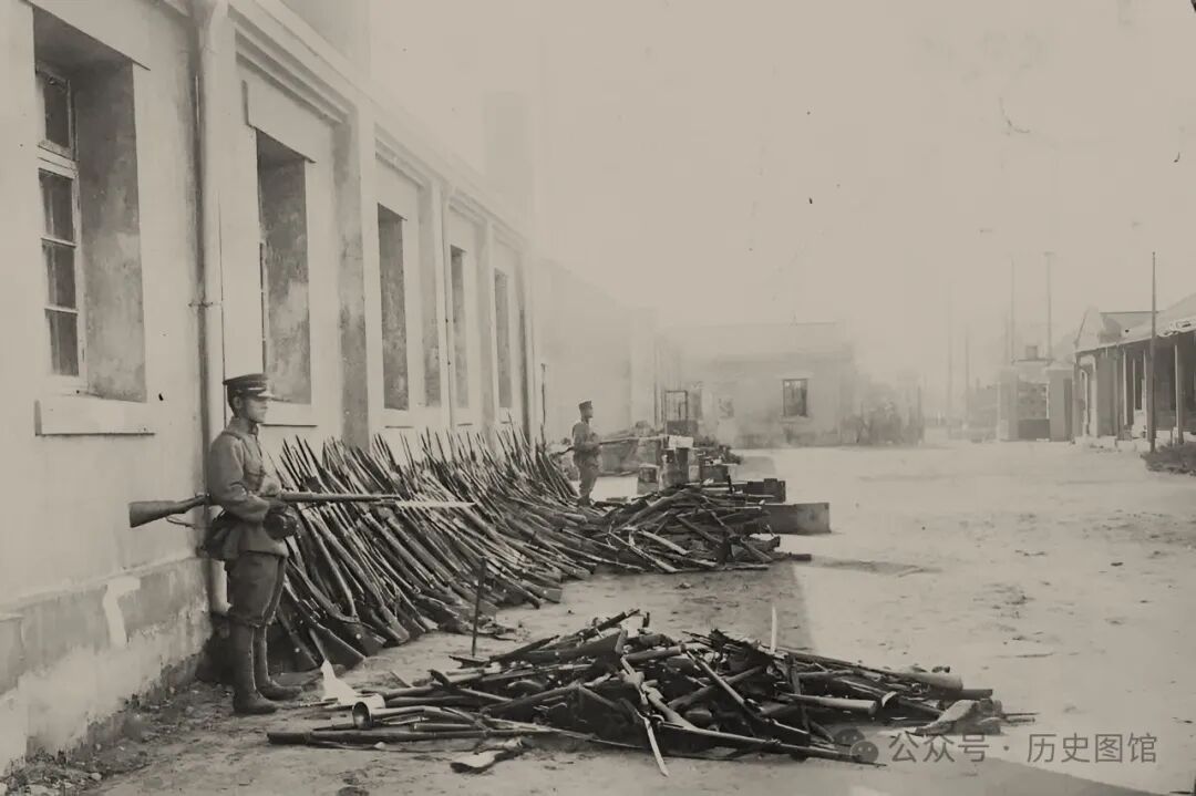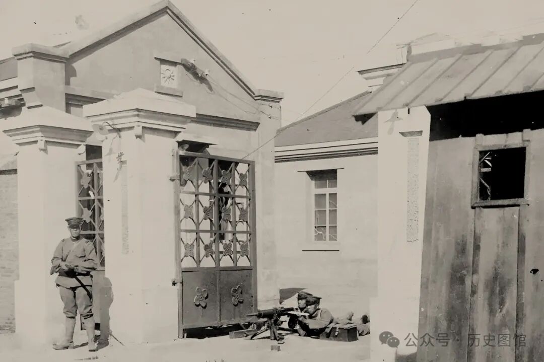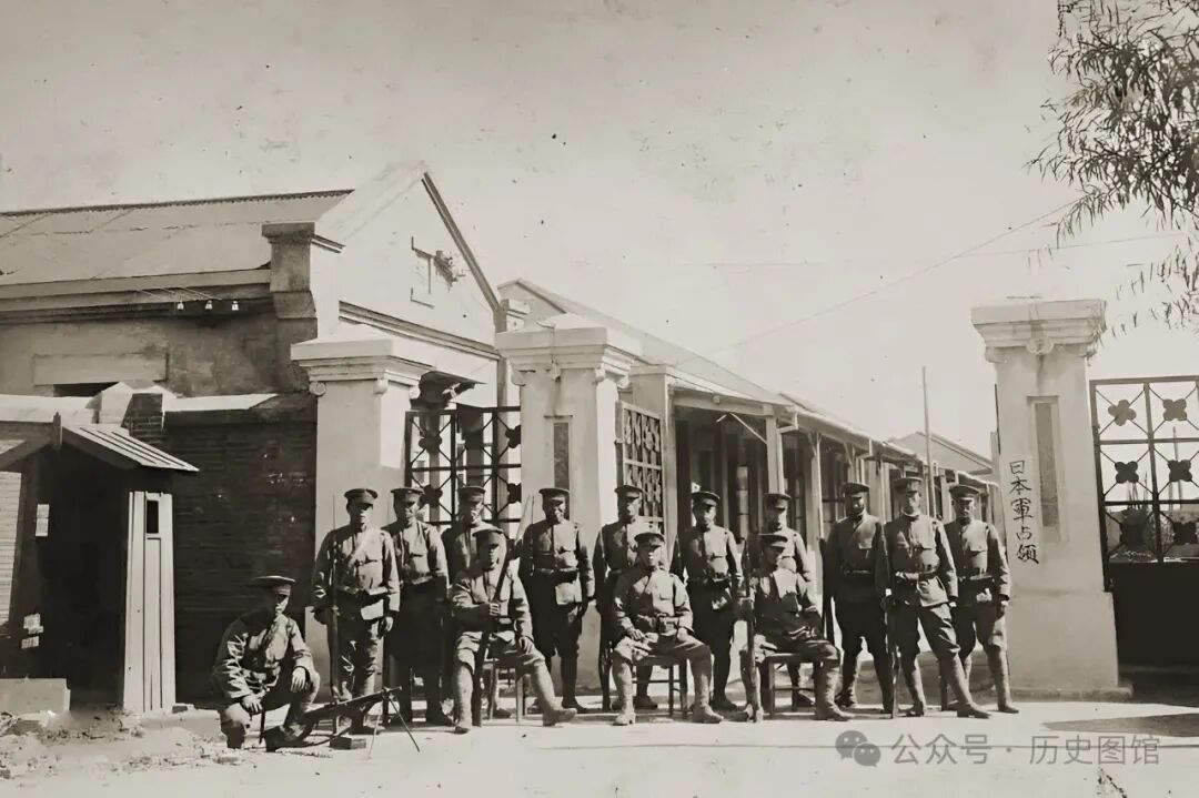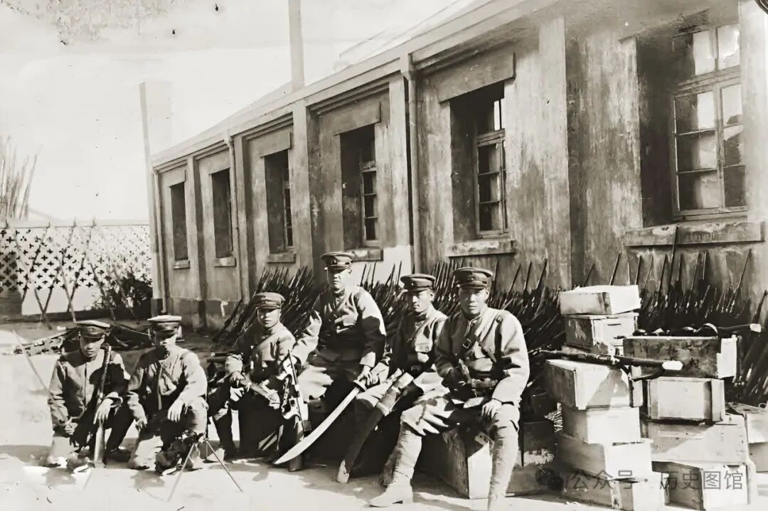 仔细看,在大门口右侧竖牌上,清晰写着“奉天(沈阳)警备队本部”字样。九一八事变爆发后,率先反抗的不是军人,而是警察。这几名中国人,不知道是什么身份。
