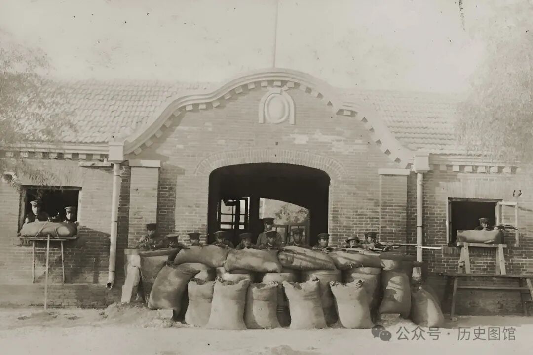 辽宁某地,日军占领了一座仓库,并将这里作为据点,设置了沙袋掩体。在仓库的窗户位置,日军也放置了沙袋,有日军士兵在警戒。