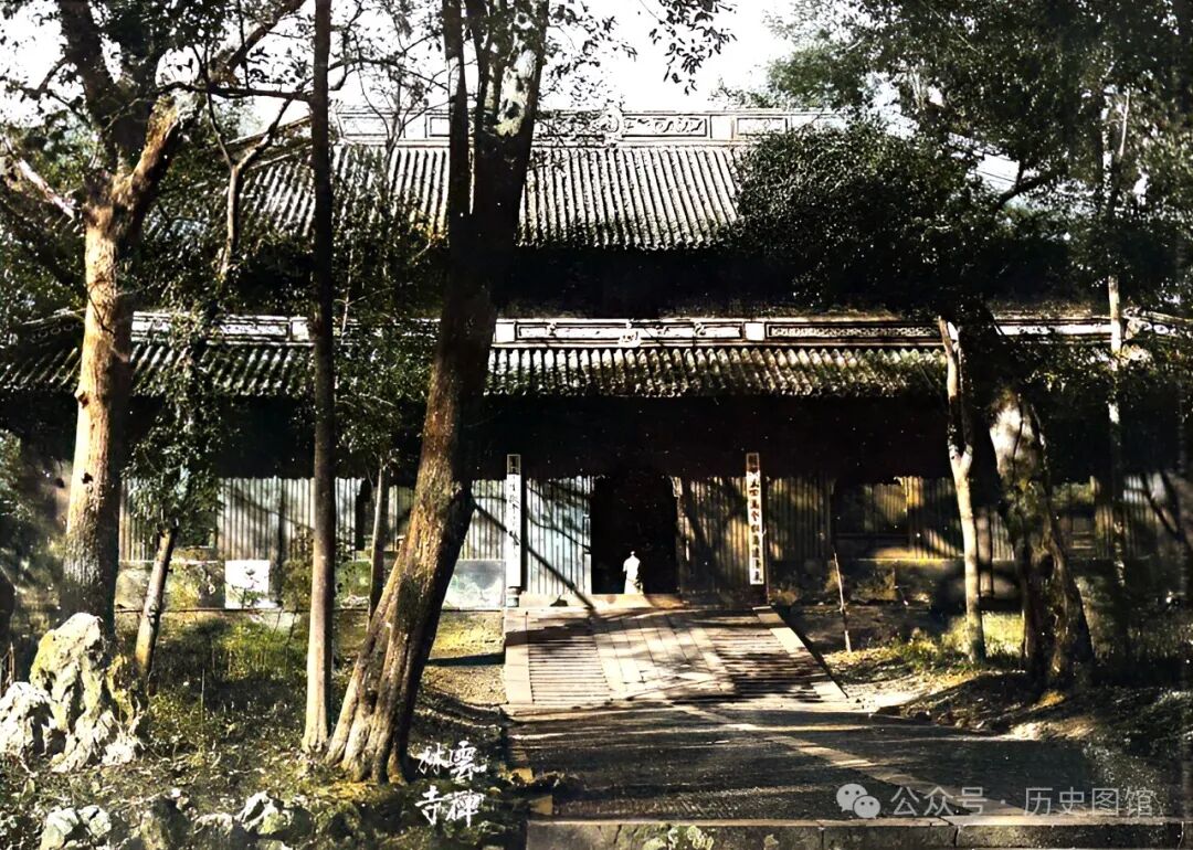 这是西湖最大的佛教寺庙——灵隐寺,也叫云林禅寺。位于西湖西面的灵隐山麓,背靠北高峰、面朝飞来峰。照片里的云林禅寺,环境清幽,古树参天,是杭州最早的名刹。