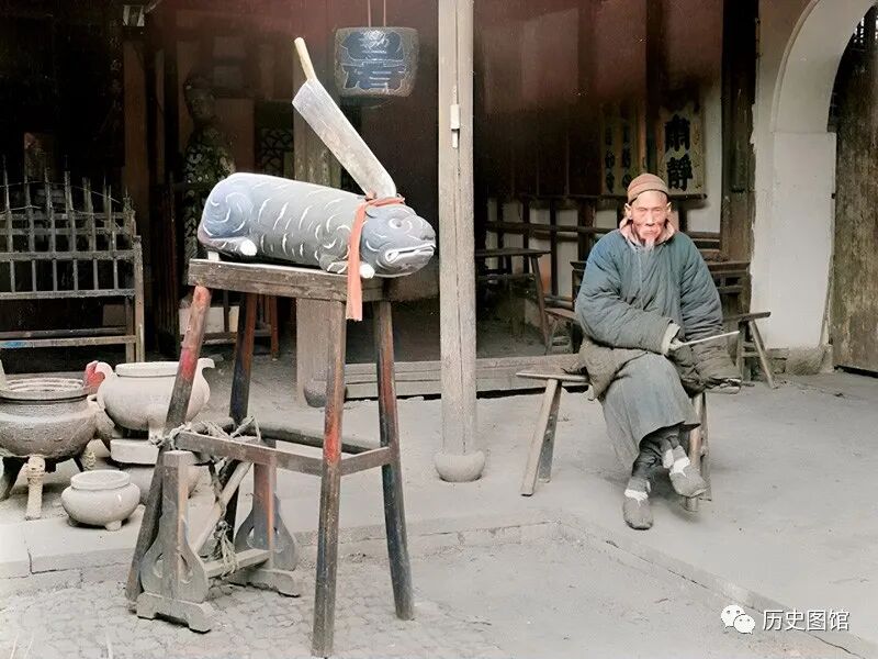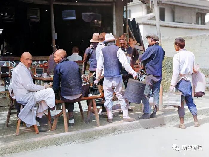 下面这组老照片(黑白照片后期上色),拍摄于1917年前后。反映的是杭州普通百姓谋生的真实瞬间。
