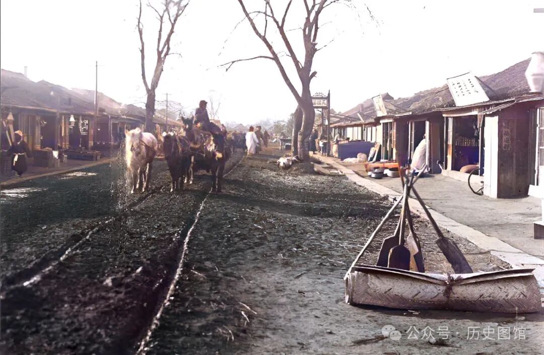 这是30年代延吉老头沟一条街道上的情景。街道是一条泥巴路,马车压过的车辙一直延伸到远方。街道两侧,是一些商铺。今天的老头沟,是吉林省延边朝鲜族自治州龙井市下辖镇。