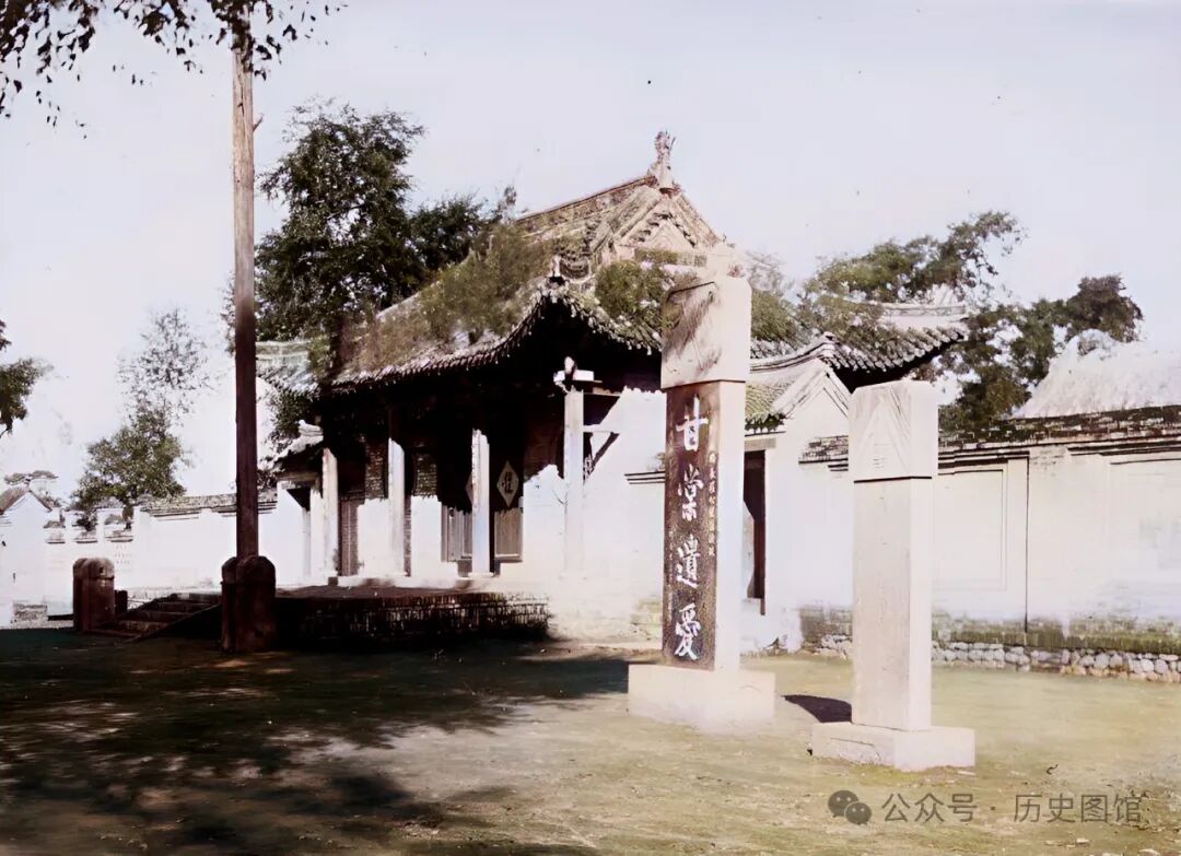这张照片拍摄于灵宝寺,寺门前矗立的石碑上,写着“甘棠遗爱”四个大字。它是珲春百姓所立,为的是感念珲春首任副都统依克唐阿对珲春所做出的贡献。照片拍摄于1936年。