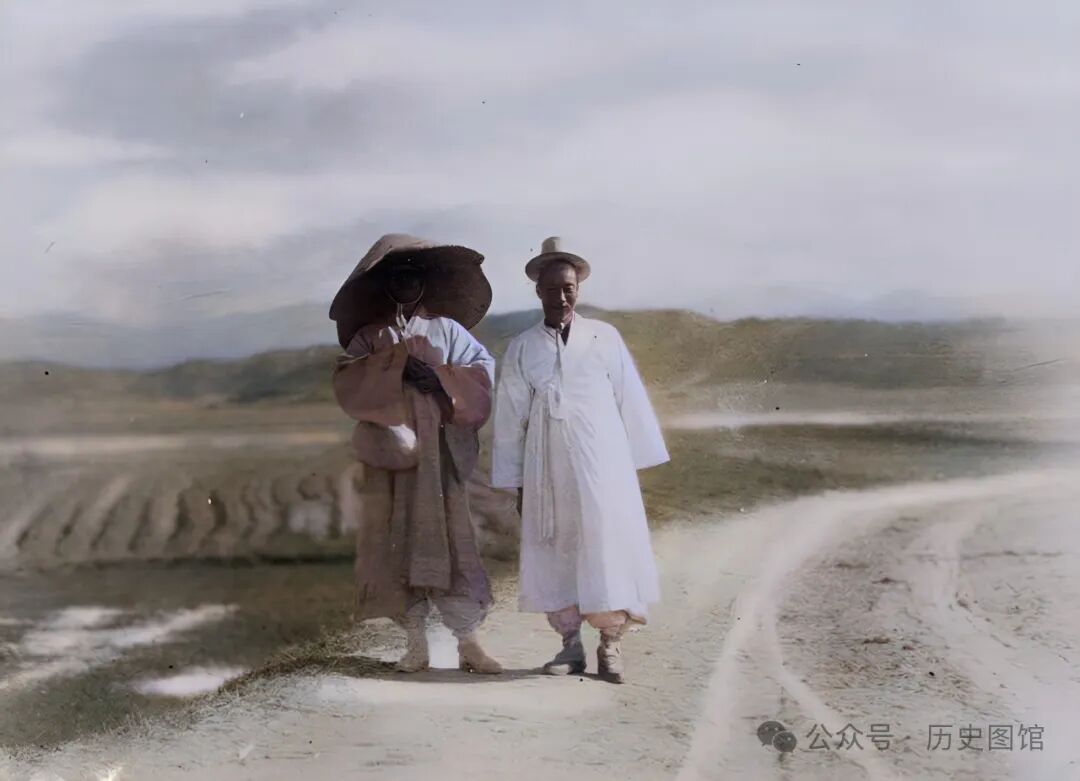 两名朝鲜族男子从珲春城外的大路上走过。他们的服装和帽子,很特别。隶属于延边朝鲜族自治州,朝鲜族多。他们的服饰穿着、生活习惯,都有其鲜明的独特性。