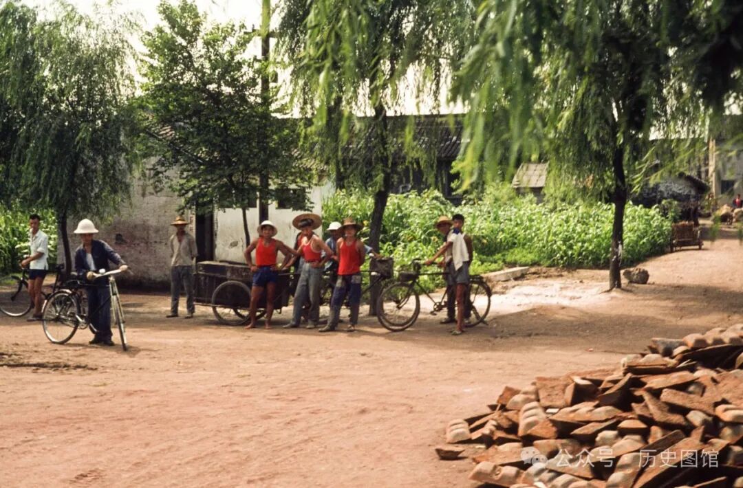 他们穿着具有那个年代特色的红背心。有的骑着自行车,有的推着三轮车。看到一名外国摄影师对着他们拍照,每个人都脸上都露出了好奇的表情。