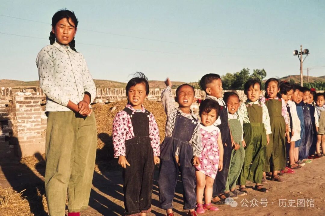 1972年,河北遵化乡下一所幼儿园。老师正带着孩子们,排着整齐的队伍站在路边,欢迎到学校参观的外国代表团。摄影师拍下了这一瞬间。