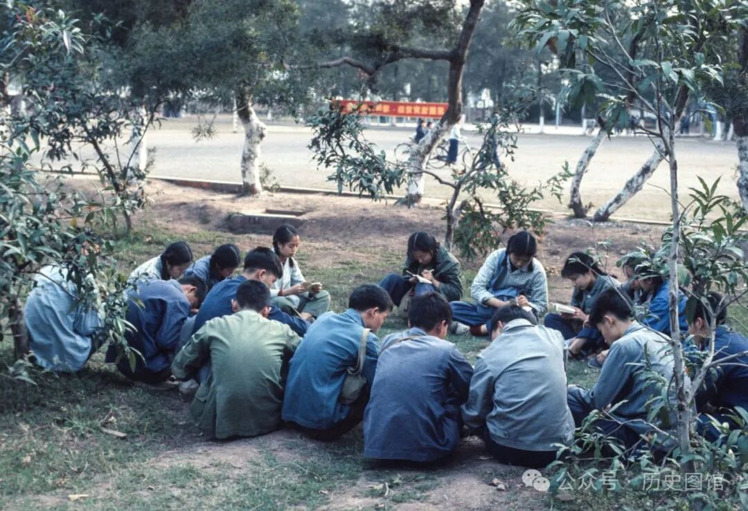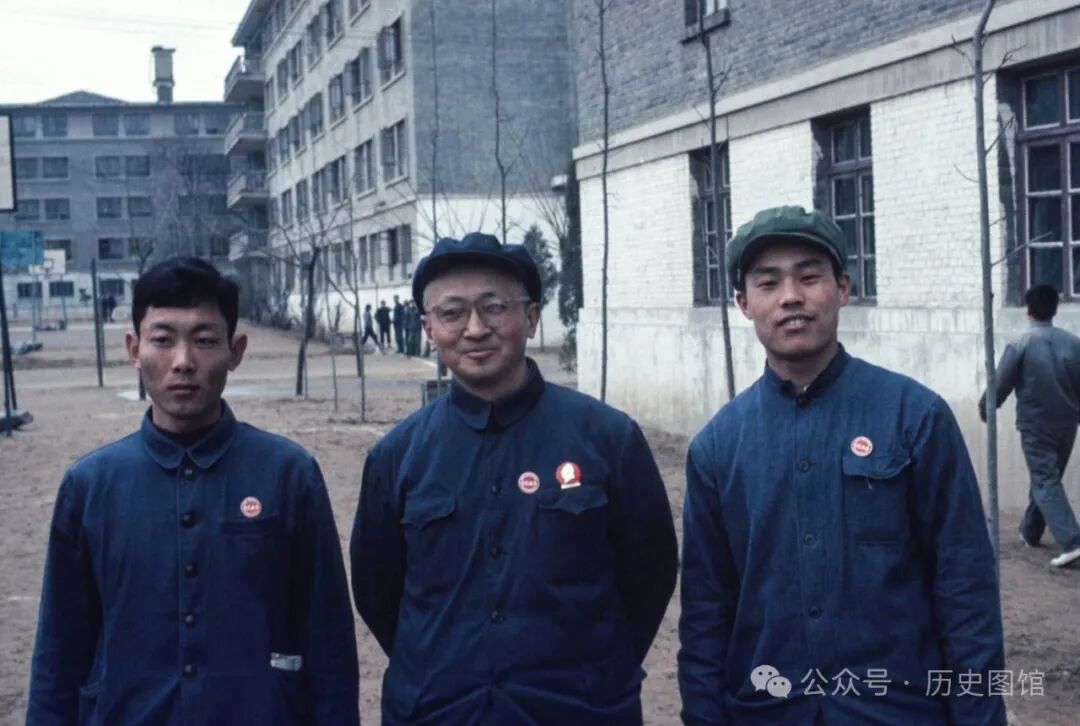 1972年,河北遵一所学校的几名教职员工,都穿着蓝色的中山装,正站在学校的操场里合影。他们都是知识分子,眼神中透露着睿智。