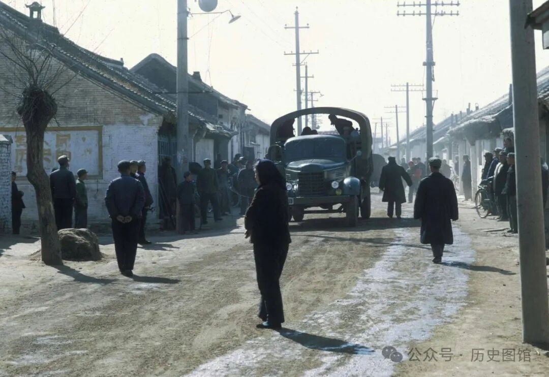 1972年,河北遵化城内的一条大街,两侧的建筑是典型的北方瓦房。天气十分寒冷,街道古色古香。路面上的冰还没有完全融化。但是这些,都阻止不了人们生产和生活的热情。