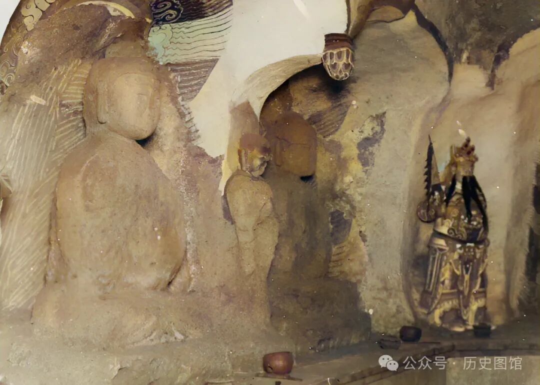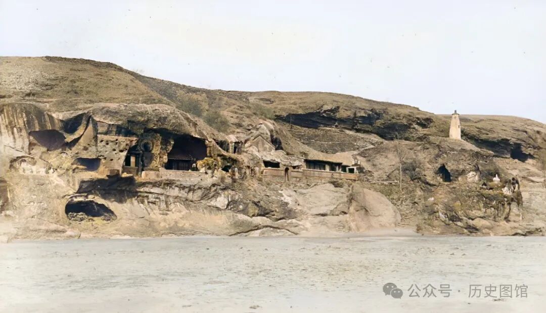 这张照片,拍摄于义县的万佛堂石窟。万佛堂石窟位于义县城西北9公里处,石窟建在大凌河北岸福山的悬崖峭壁上。那时候的福山,山上光秃秃的。
