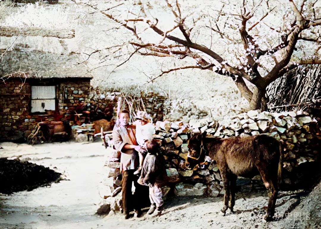 春天来了,义县一户农家院子里,桃花开得正艳。女主人抱着孩子,站在院墙边。墙边还拴着一头小毛驴。这样的画面,太有意境了。