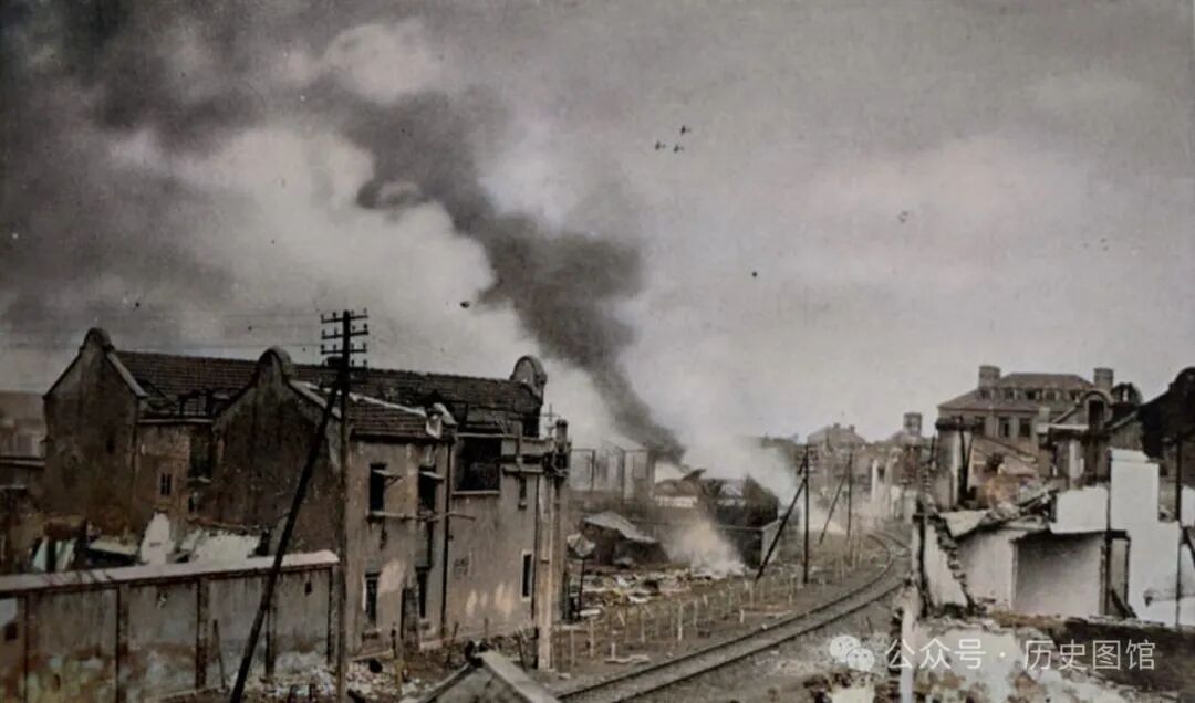 日军摄影师拍摄下了当时的战场画面:日军出动飞机坦克狂轰乱炸,昔日繁华的城市,变得满目疮痍。数不清的房屋在燃烧,到处是断壁残垣,令人触目惊心。