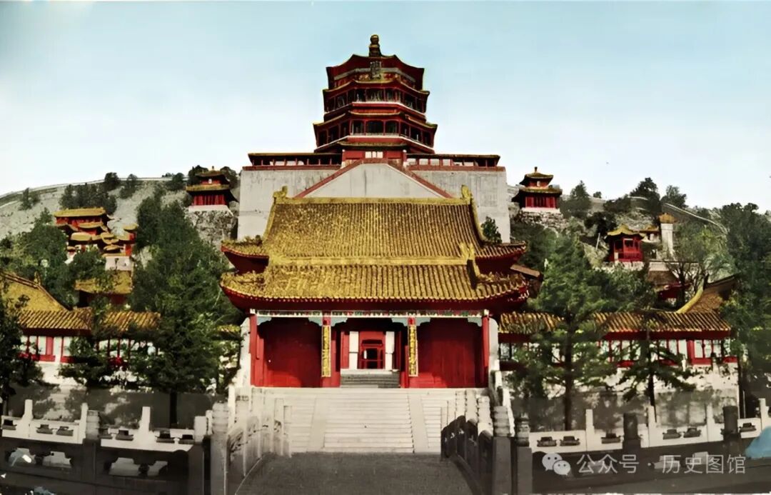 这是位于颐和园万寿山排云殿佛香阁。万寿山,是颐和园的最高点,山前是昆明湖。排云殿,原是乾隆为其母后60寿辰而建的大报恩延寿寺,慈禧重建的时候更名为排云殿。