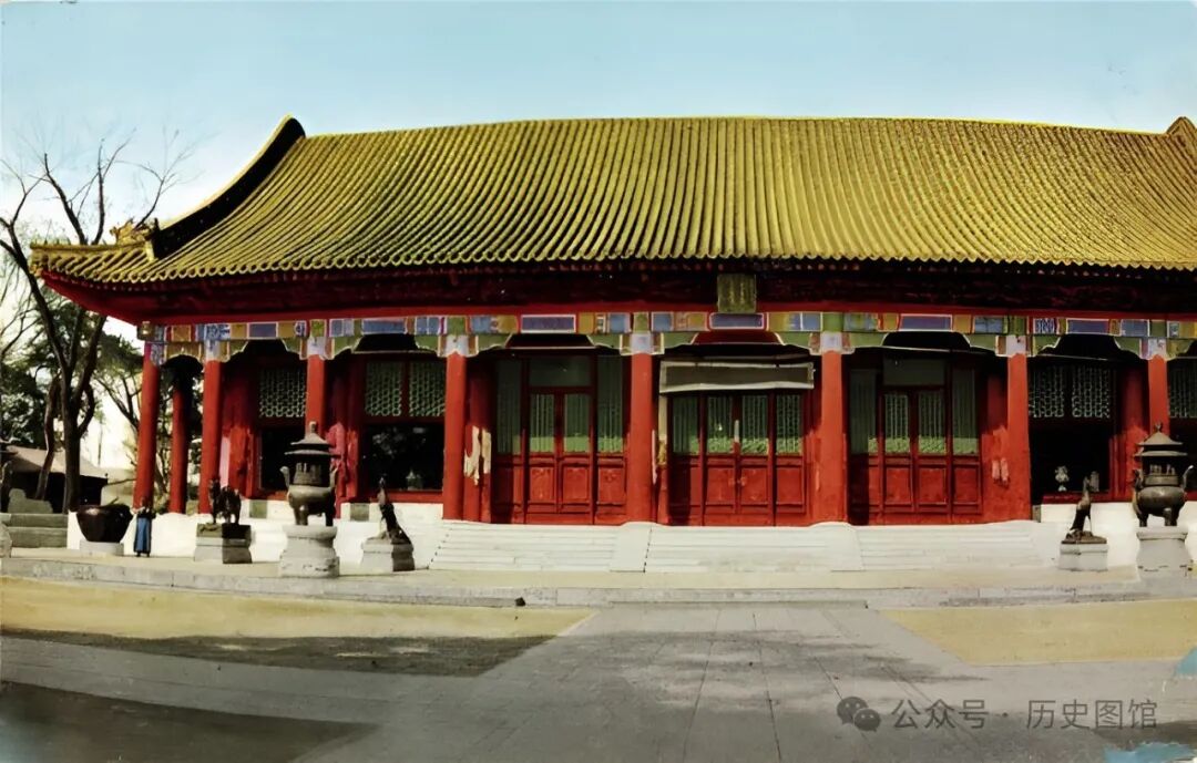 这栋建筑,是当时的国立北平图书馆,是远东最先进的图书馆之一。图书馆前矗立着威武的石狮子,原为长春园东大门旧物。