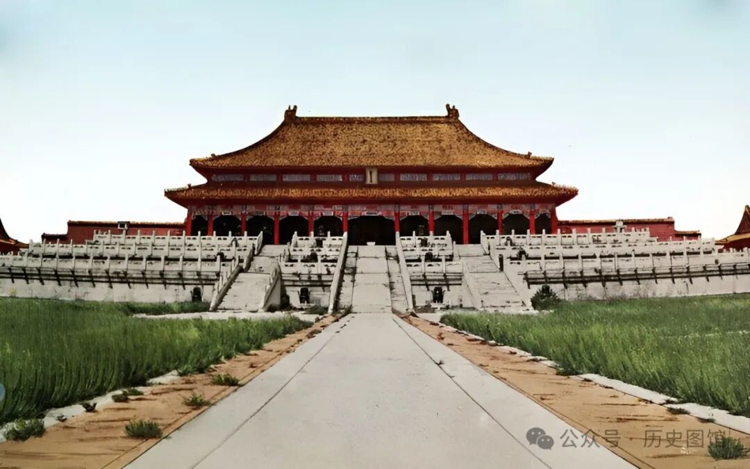 太和门是紫禁城内最大的宫门,也是外朝宫殿的正门。太和门建成于明永乐十八年(1420年)。照片里的太和门面阔九间,建筑为重檐歇山顶样式,看上去雄伟壮观。太和门两侧,有昭德门和贞度门。