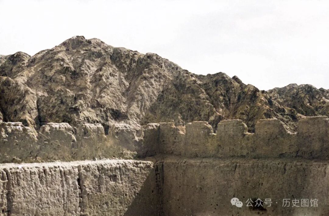 李约瑟登上了这座古老的炮台,历经风雨侵蚀,这座土筑的炮台仍然耸立,城墙上的垛口都还很完整。大泉河对岸的三危山上,没有什么植被,看上去光秃秃的。岩石犬牙交错,透露着亘古的荒凉感。