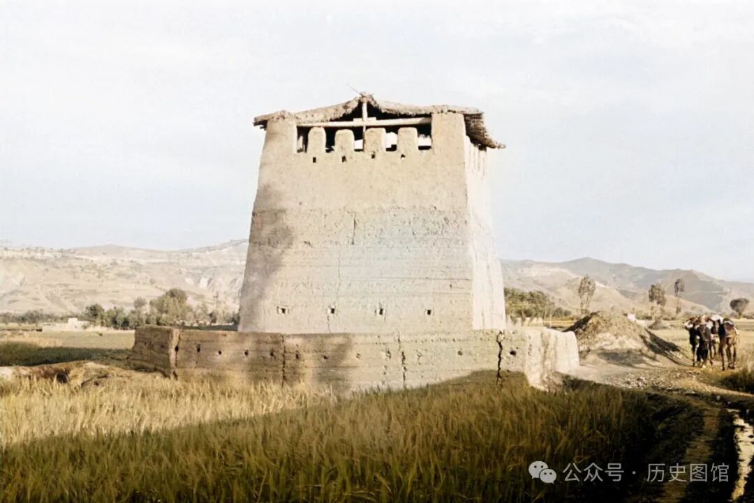 30年代,位于甘肃兰州郊外的一座碉楼。这座碉堡建在一条大路旁,有一二十米高。