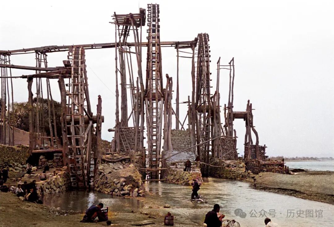 见到这样的几十米高的巨型装置,你一定非常震撼。这场面也只有在史诗级电影中才会出现。这就是位于兰州黄河边上的水车。水车下有不少女子在洗衣服。