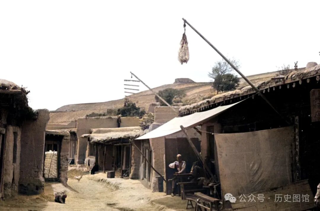 30年代,兰州城内街道情景。街道不是很宽,两侧是商铺,都在开门营业。