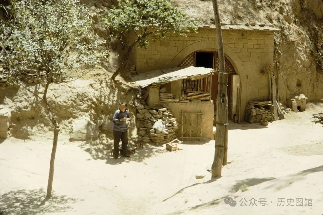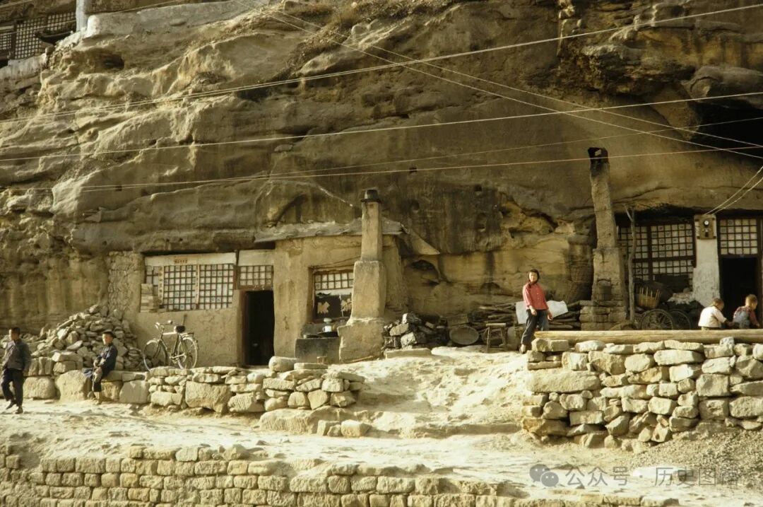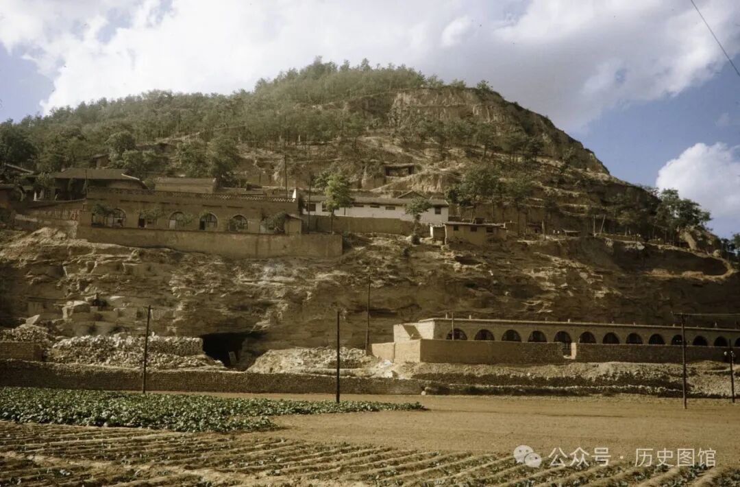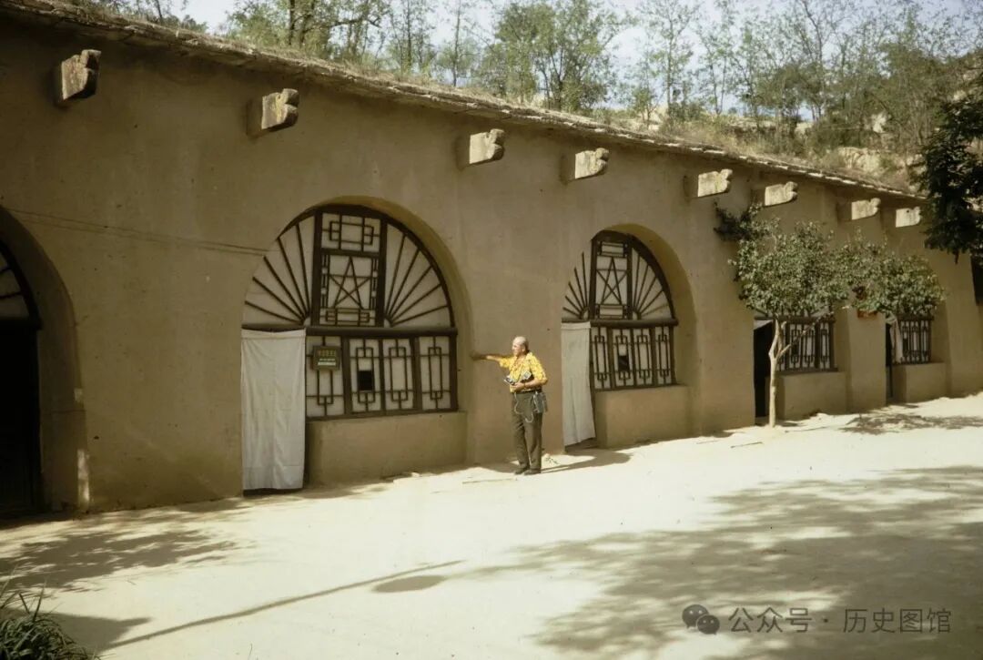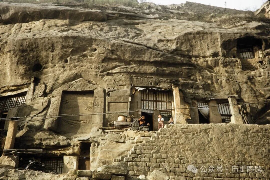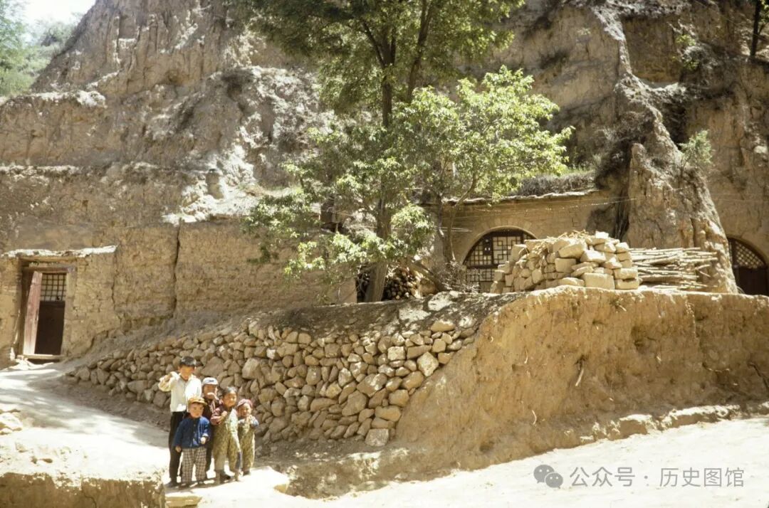 这是当时延安百姓生活的窑洞。窑洞,是我国北方黄土高原上特有的一种传统民居形式。照片中,一名女子和几个孩子正坐在窑洞前。看到福尔曼拍照,女子朝他挥手致意。