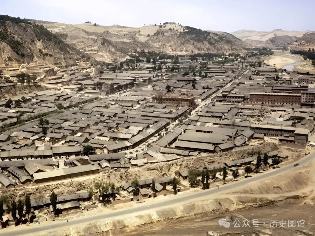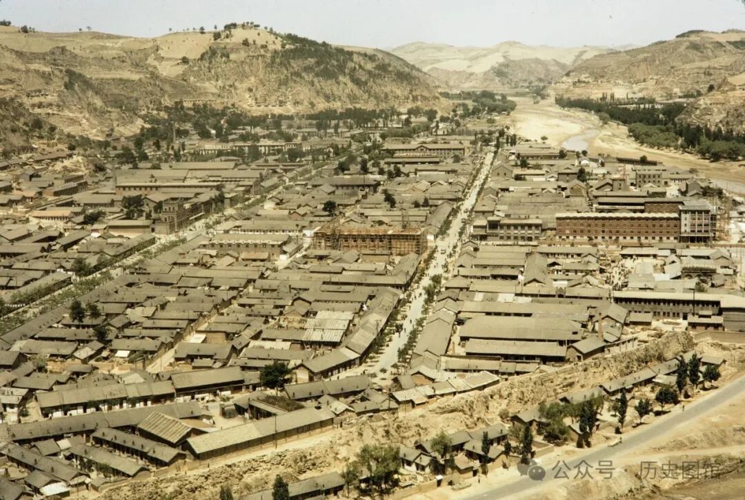 站在宝塔山上,俯瞰延安城,令人惊叹。城中有两条笔直的大街,房屋鳞次栉比。房屋大部分都是瓦房,还有一些楼房。