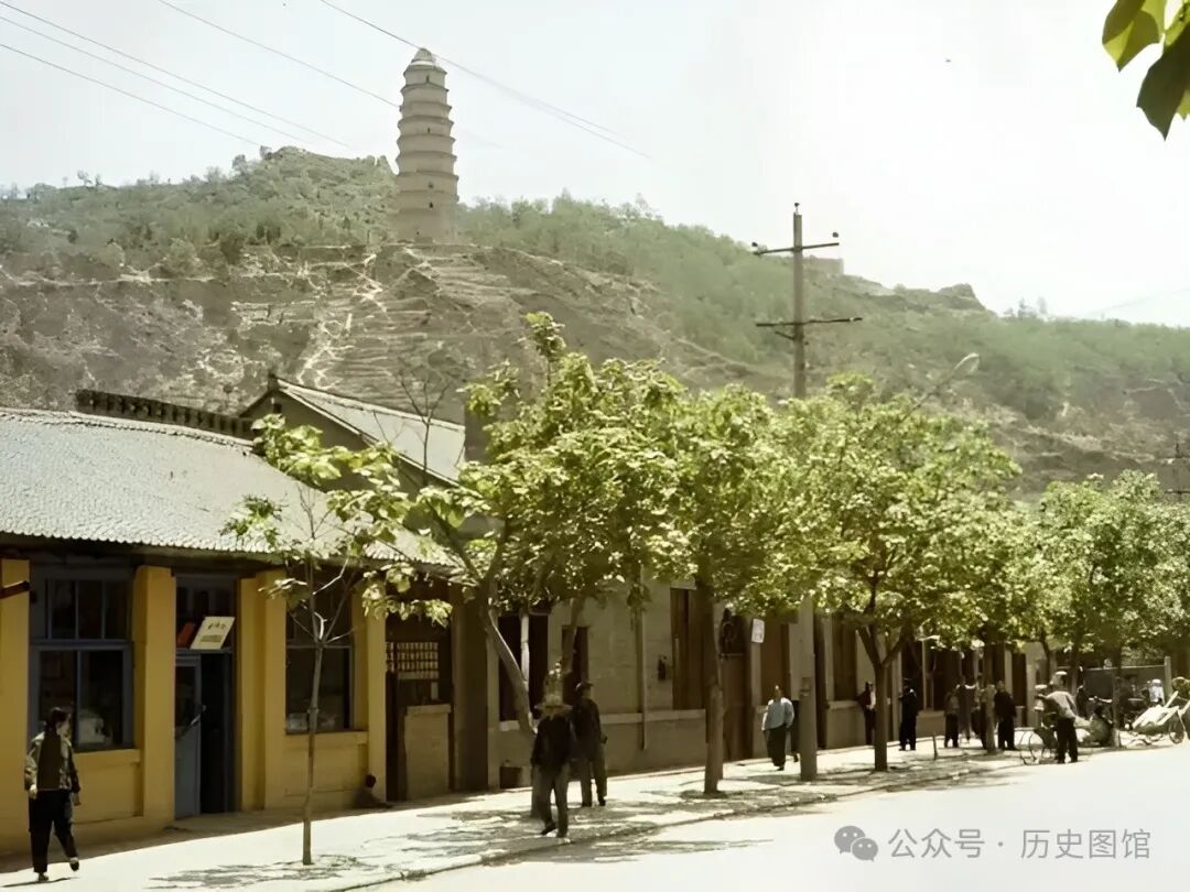 1973年,福尔曼站在延安的大街上,远处就是著名的宝塔山。宝塔山上有众多历史文物和遗址,人文景观和自然景观融为一体。所以说,只有登上了宝塔山,才算是真正到了延安。