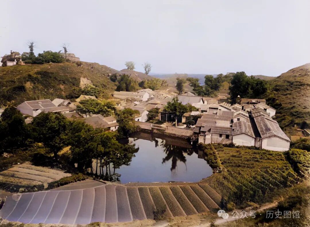 1870年,广州郊外农村景象。在一片水塘边,坐落着一个小村子,村子外面是大片的菜地和农田。小村又被四周的青山环抱,看上去十分宁静,充满了田园气息。