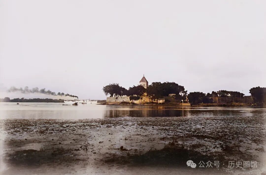 车歪炮台据守珠江,真可谓一夫当关万夫莫开。照片中,轮船“关海号”,正拖着长长的黑烟从炮台边驶过。