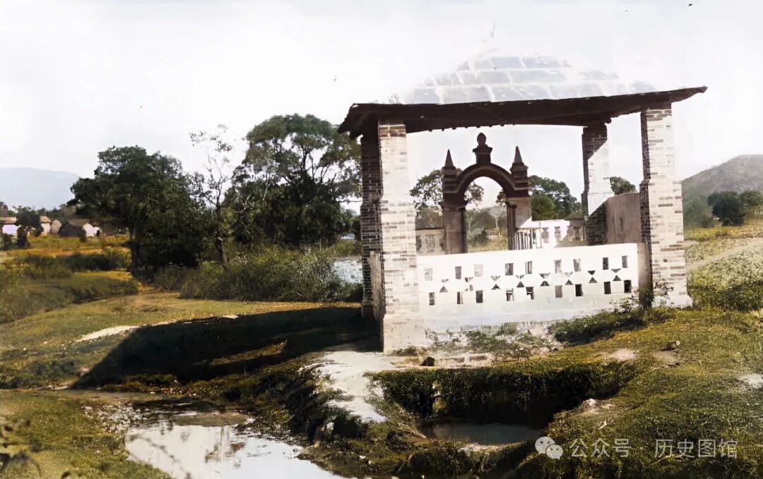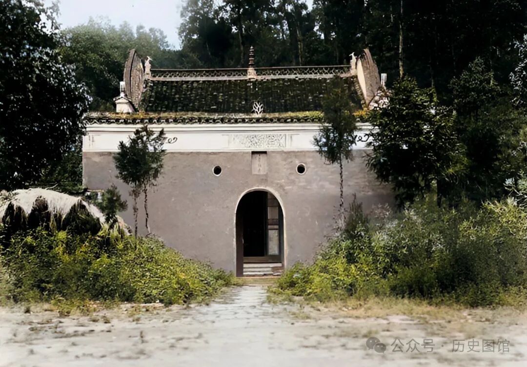 上世纪20年代,位于庐山一座关门附近景象。关门的门楣上方,镶嵌写有“月弓堑”三个大字的石匾。