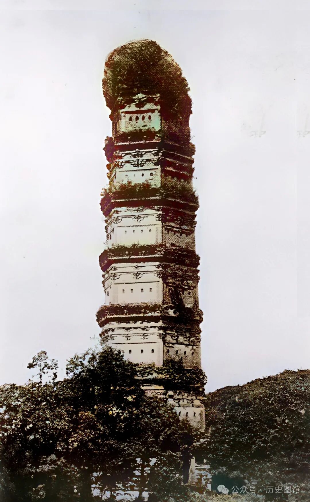 古塔一开始是木塔,后改为石塔,明代重建时又改建成了铁塔。1938年,该铁塔被日军炮火摧毁。从此,金轮峰上再无高塔。