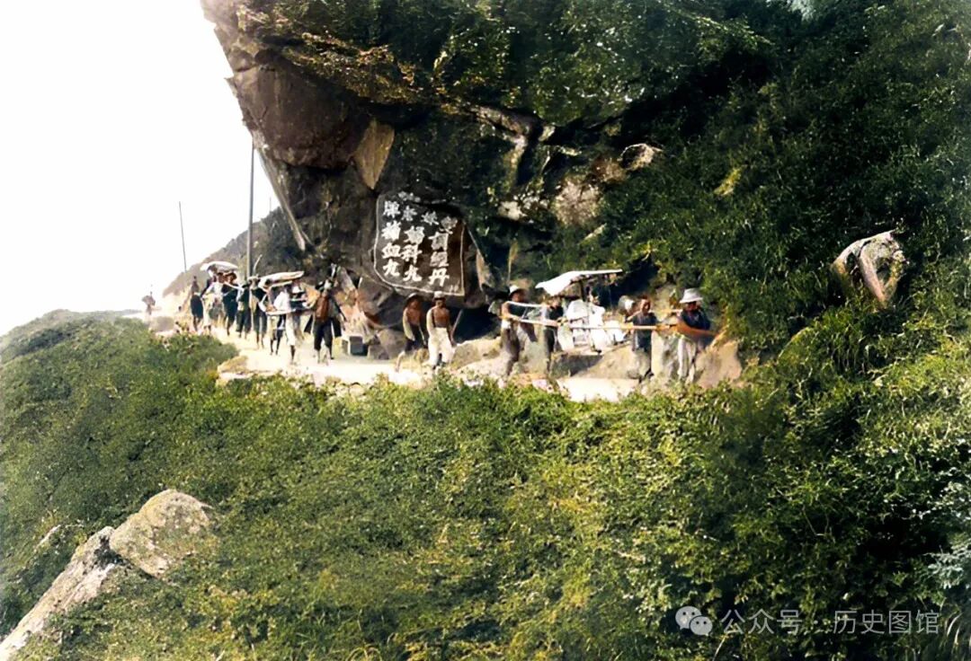 上世纪二三十年代,庐山“好汉坡”上景象。狭窄的山路,一边是绝壁,一边是悬崖。走在上面腿肚子发软。当时的庐山,几乎看不到什么游客。