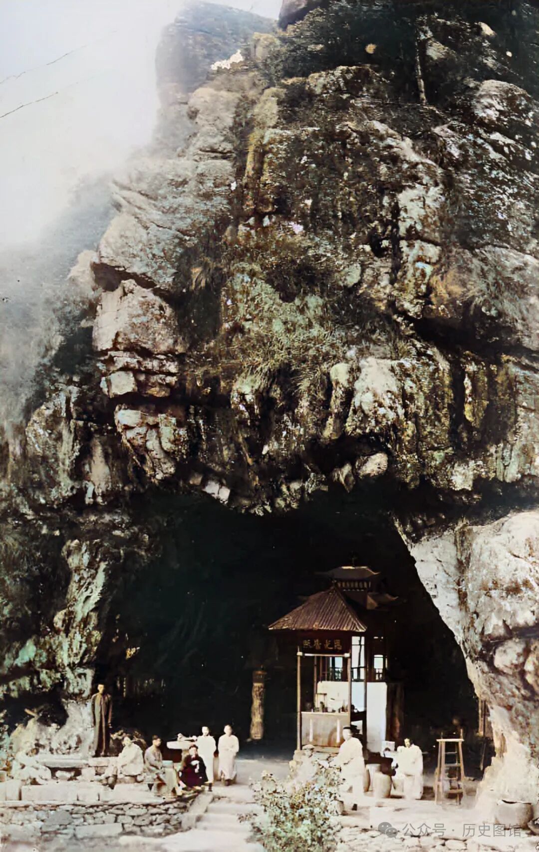 20年代,庐山仙人洞景象。仙人洞位于天池山西麓,为自然形成的一处洞穴,洞深10米宽10米,可容纳百人。相传唐代名道吕洞宾,曾在此洞中修炼,直至成仙。