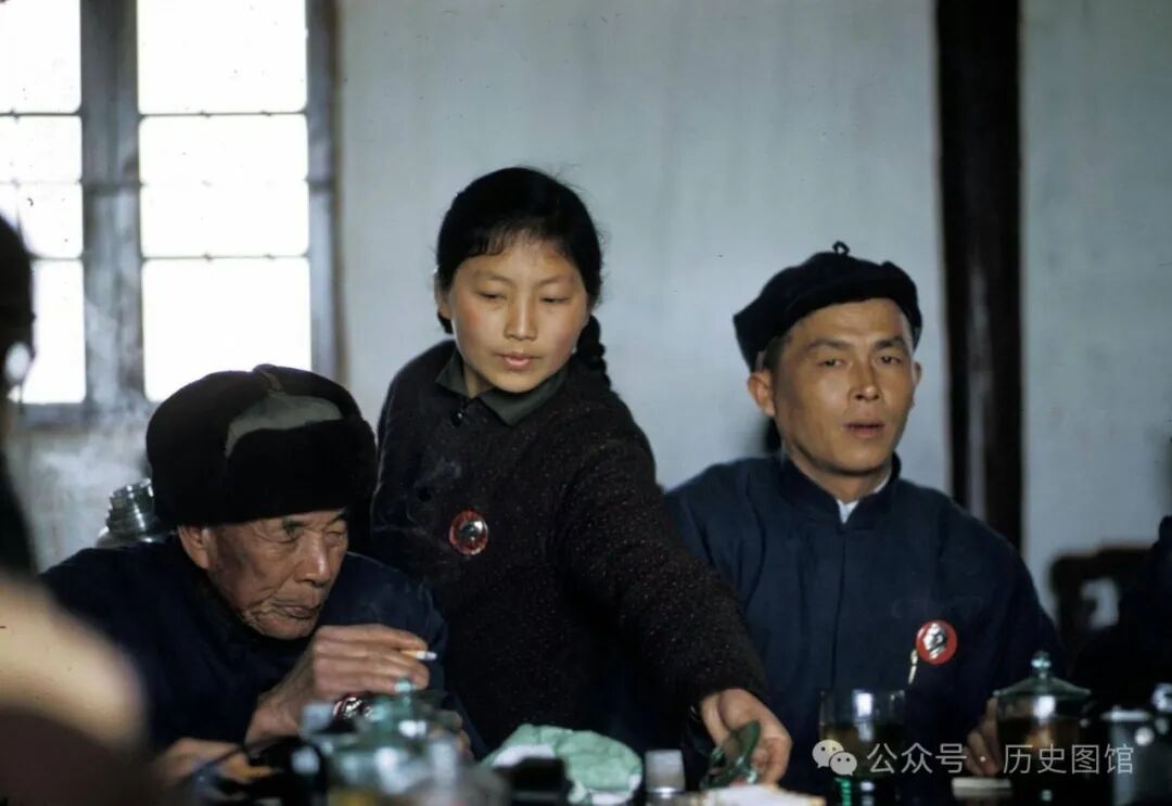 1972年,无锡河埒大队的干部们,正在大队部的会议室里召开扩大会议,规划大队未来的发展方向。这次会议很重要,与会人员也很多。一名女服务员正在为代表们倒水。照片中,所有人胸前都佩戴着像章,很有年代感。