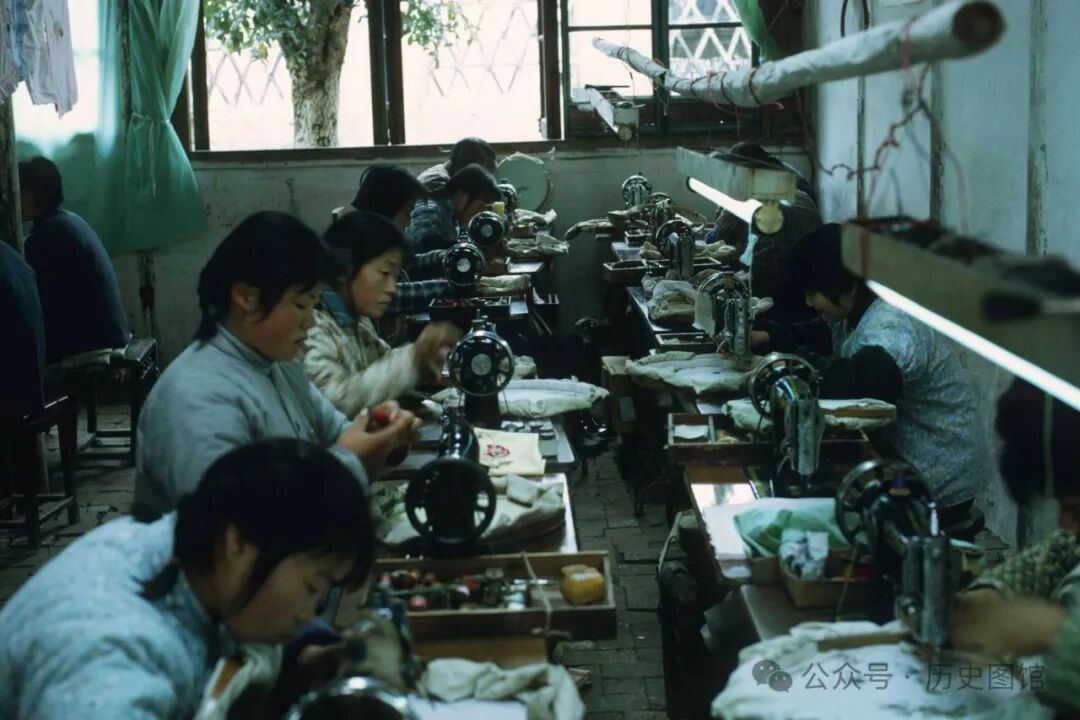 照片中,河埒大队的一个刺绣工厂里,女工们正在紧张地忙碌着。无锡是江苏的重要刺绣产地之一。无锡刺绣,俗称锡绣,它具有浓郁的乡土气息,一直流传于民间。