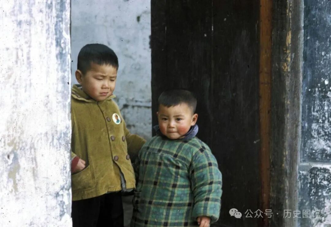 于是,摄影师举起相机,拍下了这一瞬间。照片里,小哥哥胸前也佩戴着像章。他拉着弟弟的胳膊,不让他到处乱跑,很有大哥哥的风范。