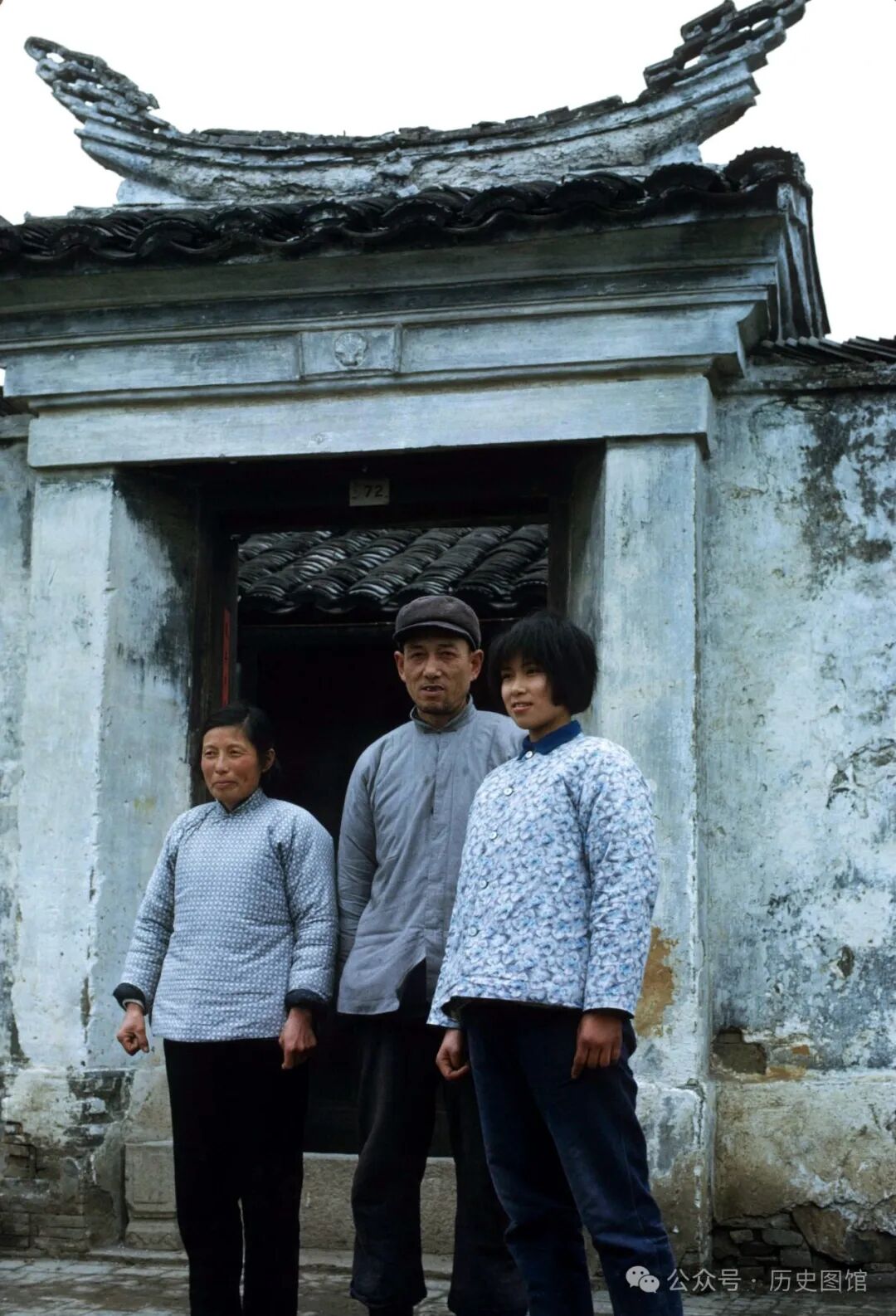 1972年,江苏无锡一户人家站在大门口拍合影照。父亲、母亲和女儿,一家三口都换上了新衣服。他们身上散发着无锡人特有的淳朴和善良。或许是第一次拍照,他们显得有些拘谨。