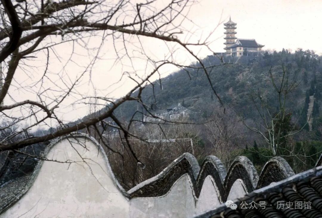 上图是70年代的锡山。山顶上古塔为“龙光塔”,该塔始建于明万历四年(1576年)。锡山和惠山之间是映山湖。历史上,惠山是文人骚客的聚集地,曾被誉为“江南第一山”。