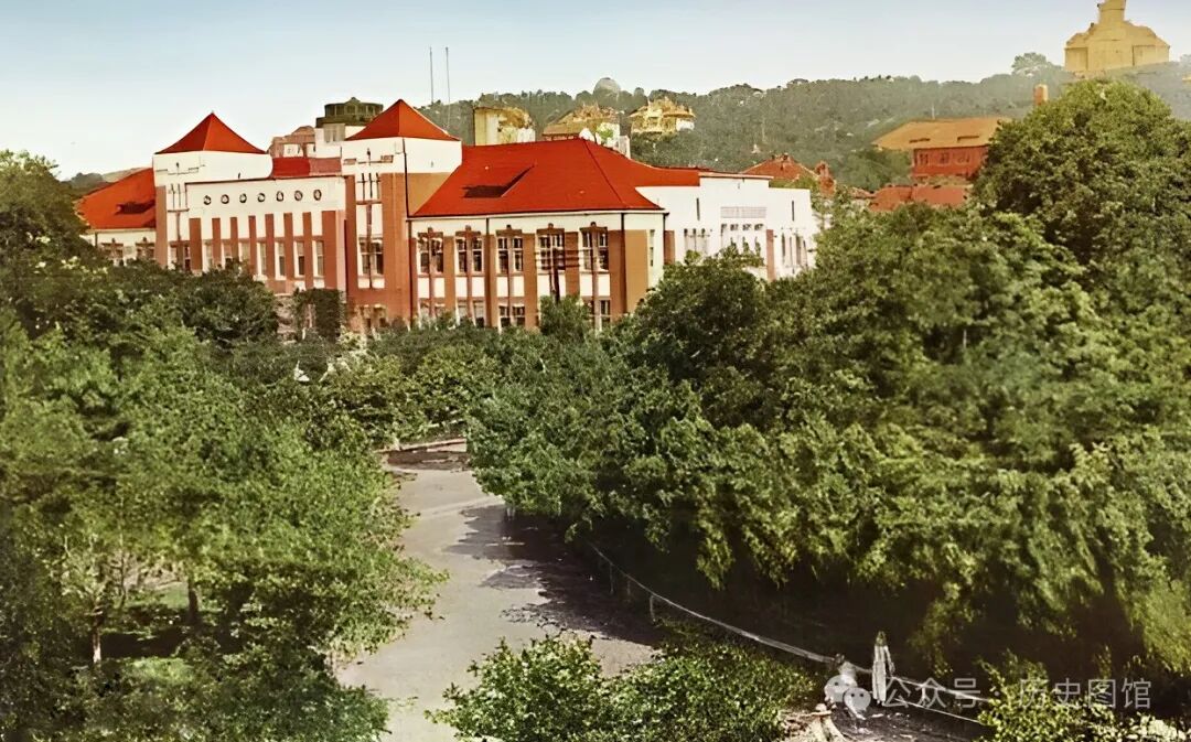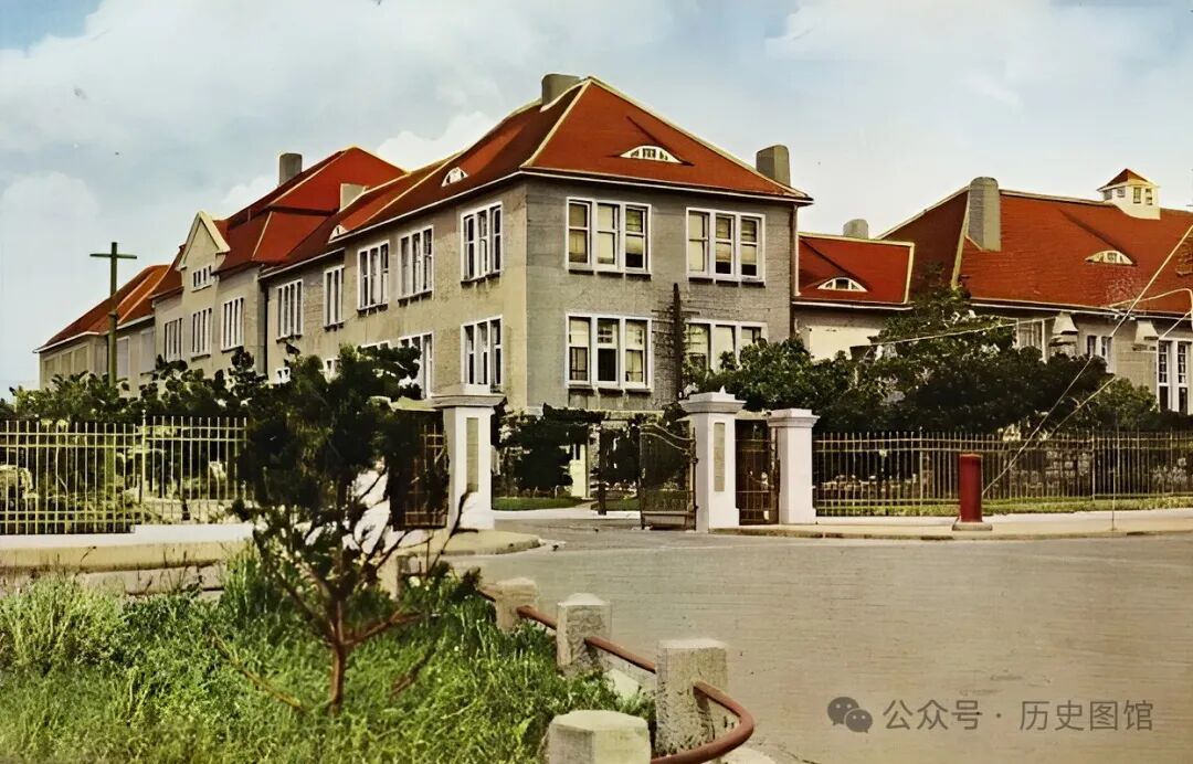 照片中这座红顶建筑,是当时的青岛日本高等女学校,始建于1917年。1923年,改为青岛高等女学校。1946年,更名为中正中学。1949年,为青岛医学院。1996年拆除。