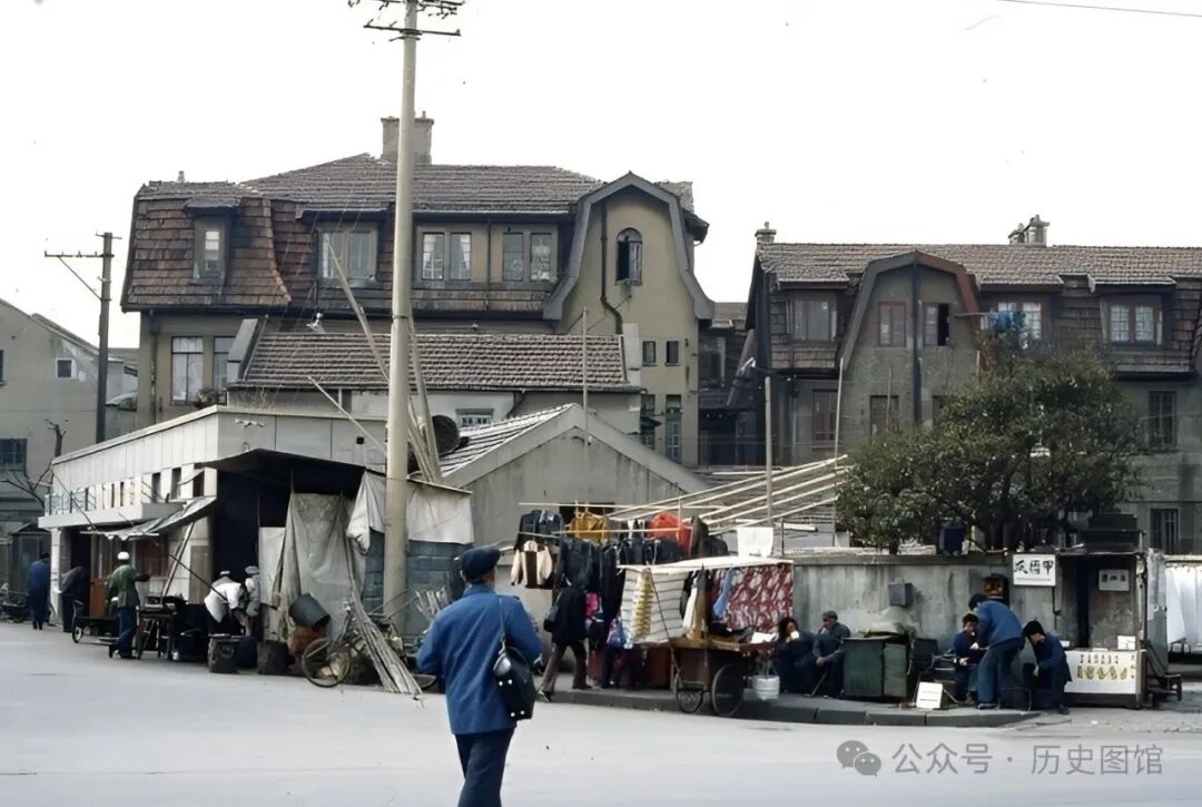 80年代,站在上海黄渡路附近,向南方向望去。纸制品厂门口有修鞋师傅在摆摊,还有卖衣服的。纸品厂院内的几栋欧式建筑,看上去有些年头了,现在仍然还在。照片中男子背的提包,在当时很流行。