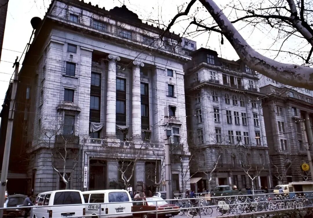 照片中这栋大楼,原是日本横滨正金银行上海分行大楼,始建于1924年。1945年该楼改作中央银行行址,1956年上海市纺织工业局迁入大楼办公。现为中国工商银行上海市分行。