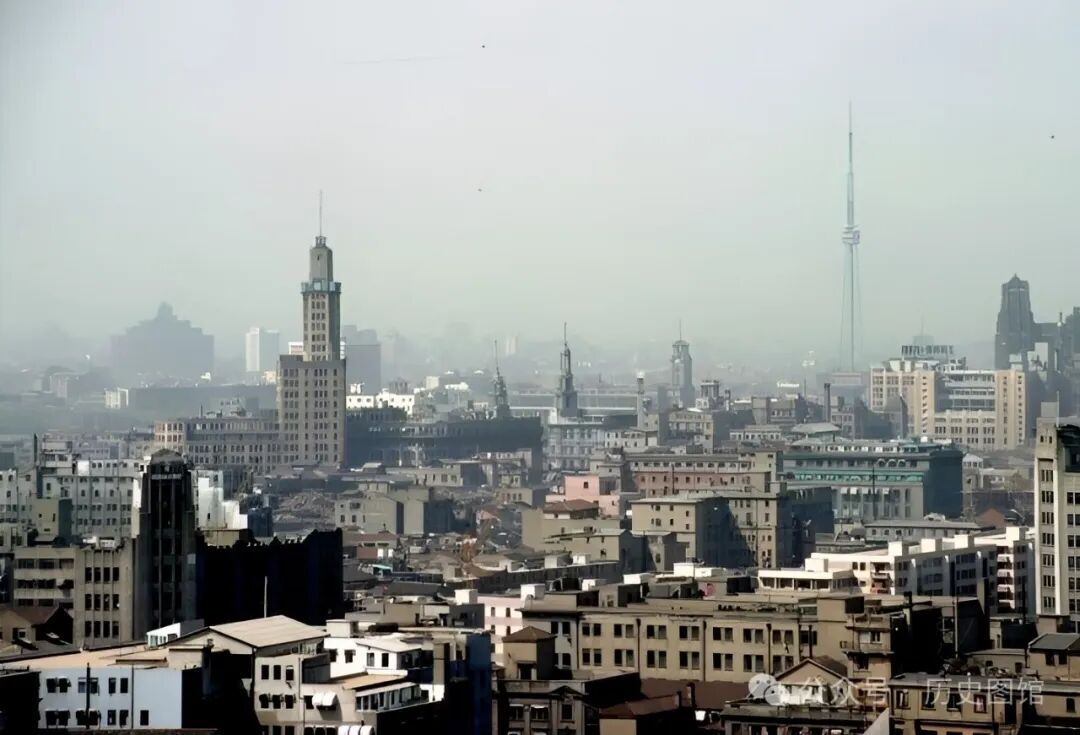 80年代,站在长乐路附近大楼上,从瑞金路向东望,城区笼罩在晨雾之中。