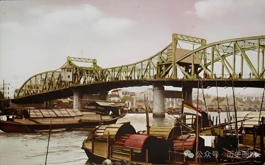 80多年前,海珠桥近景,看上去非常壮观。然而,1938年侵华日军派遣飞机轰炸广州,桥梁中孔梁开合机械有所损坏。1949年,国民党将海珠桥炸毁。1950年,广州重建海珠桥。