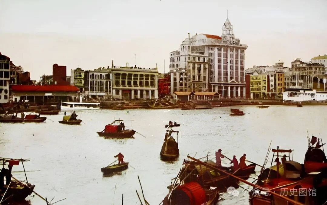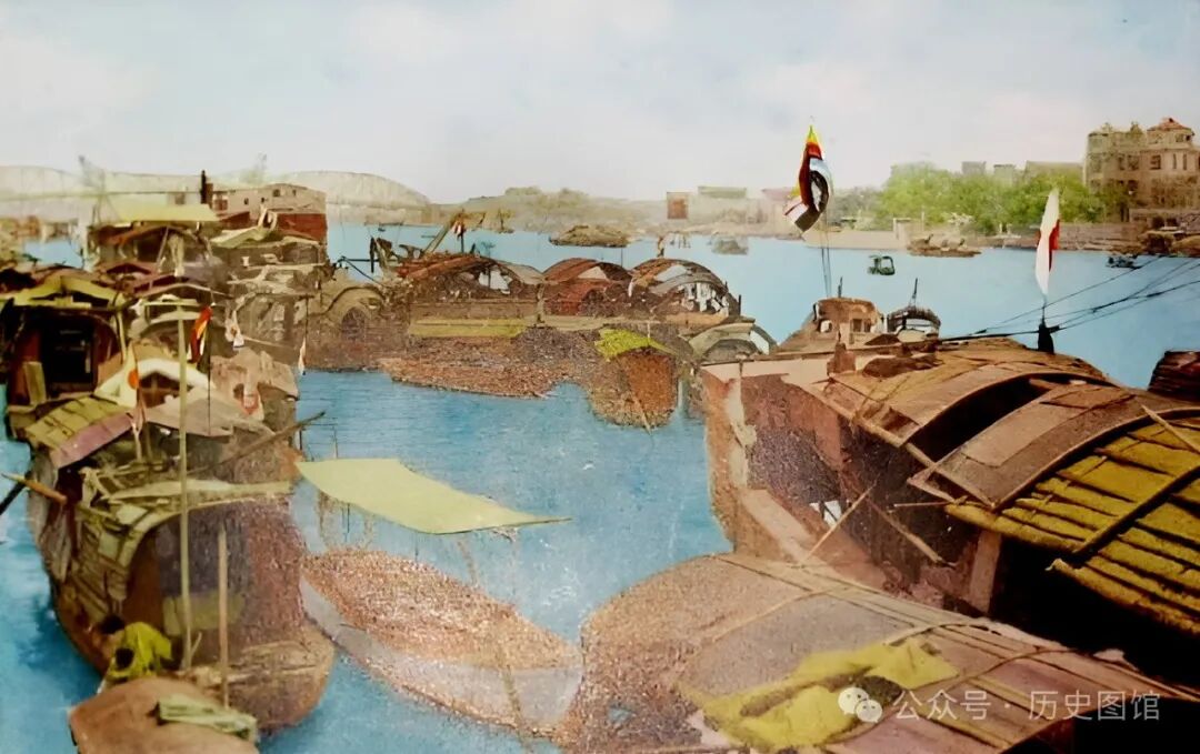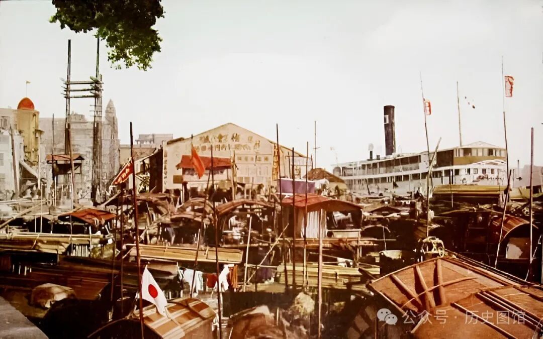 80多年前,广州珠江边一个码头上,停泊着数不清的大小船只。远处,有一艘白色的巨型邮轮。近处的一些小船上,看上去像是“疍民”船只,上面为何悬挂着日军的旗子?
